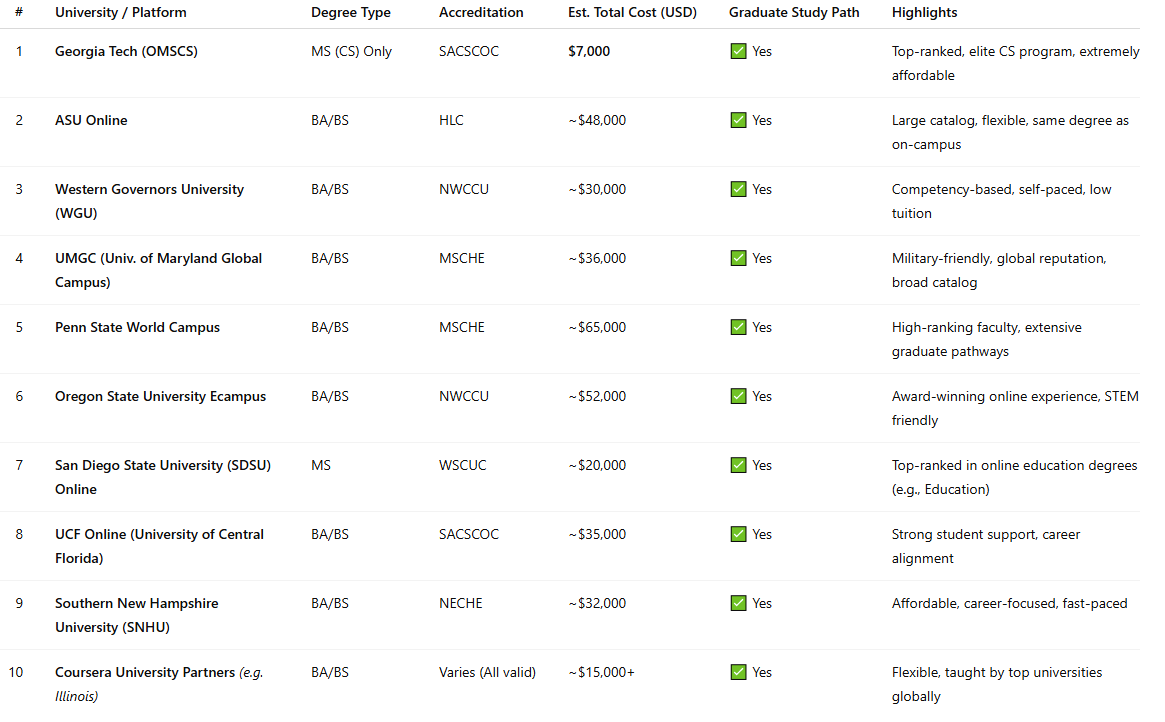Programs: Competency-based bachelor’s & master’s degrees in IT, business, education, healthcare usnews.com+15asuonline.asu.edu+15reddit.com+15umgc.edu+2en.wikipedia.org+2wgu.edu+2